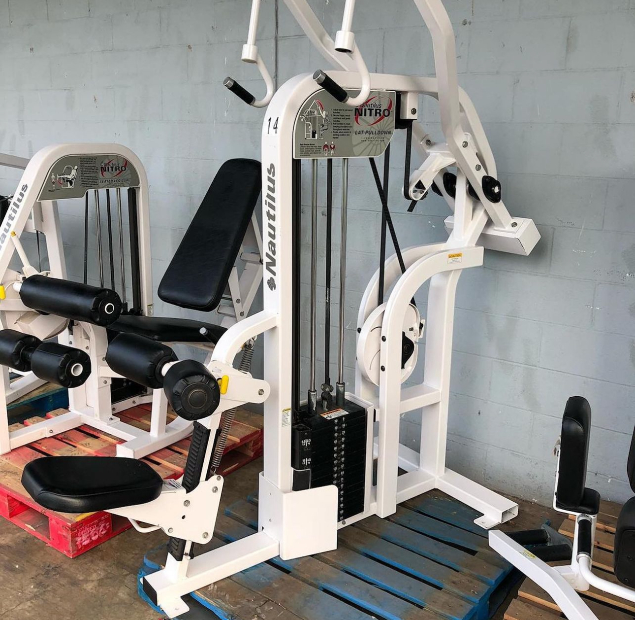 Very clean Nautilus Nitro Plus 14-unit total body strength circuit. These are late model Nautilus machines in excellent condition. There is a unit here for each and every muscle in the body and then some. This would be the PERFECT circuit and foundation of any commercial gym. This line of Nautilus is perfect in that it appeals to both the hard-core athlete, bodybuilder etc. and also to the average soccer mom. It’s a perfect balance. The machines are built like tanks and extremely smooth (Kevlar belt driven), but they aren’t big and intimidating. They are also beautiful. These Nautilus machines have it all. These units have all been cleaned, serviced and are ready to go.