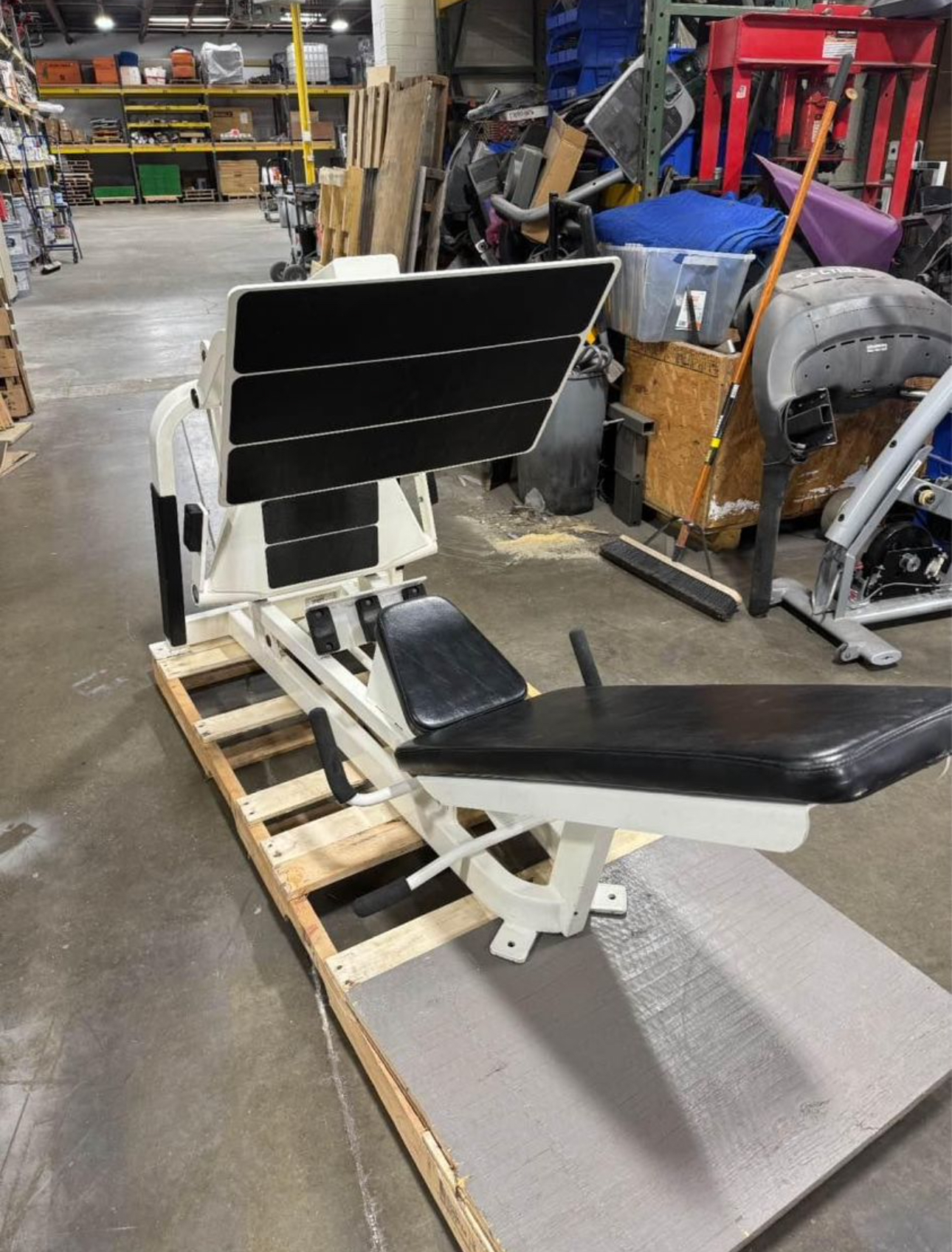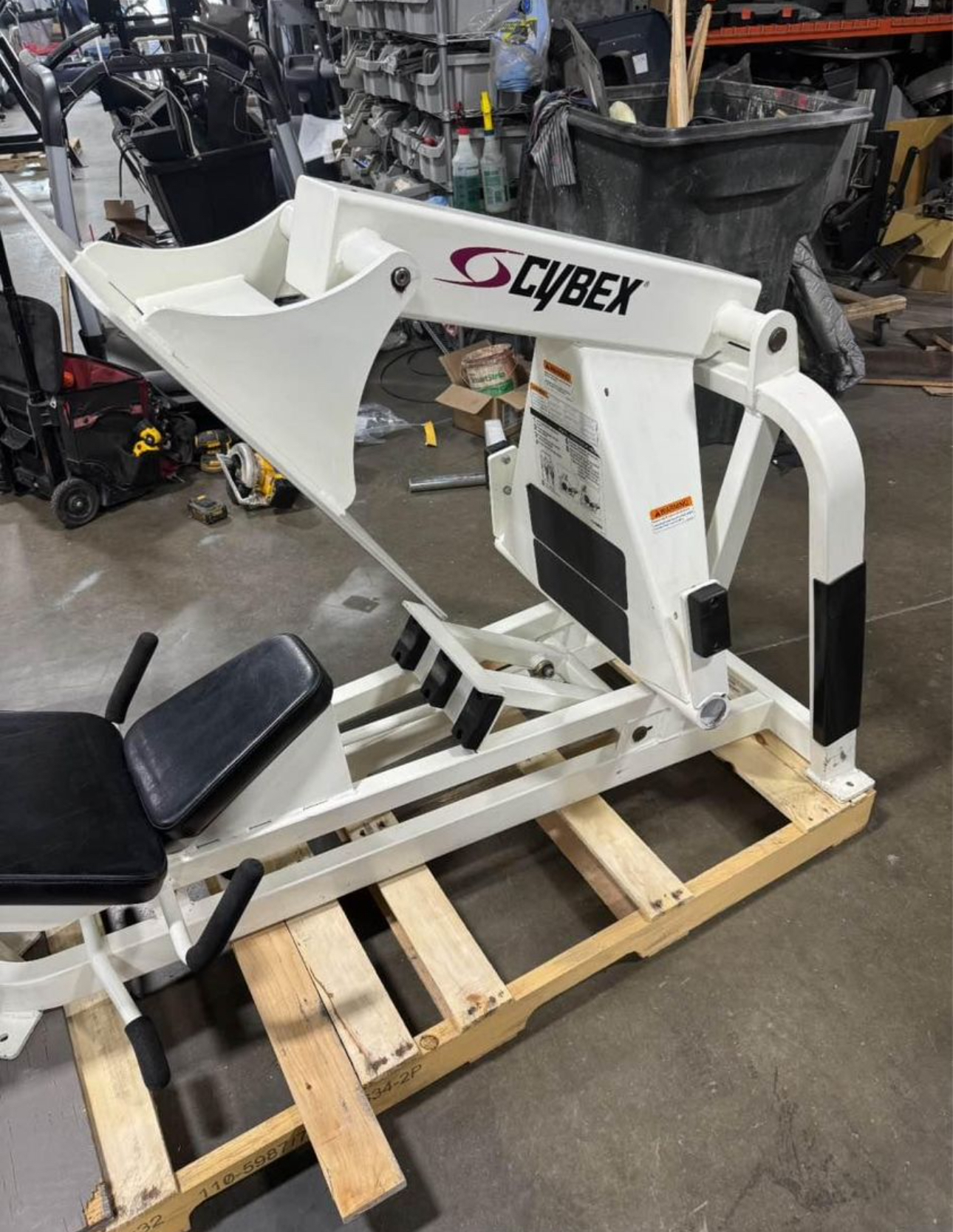 It is a commercial strength training machine designed to work the lower body muscle groups. This Cybex Plate Loaded Squat Press’ designed on 4 bar linkages. Which opposes he traditional linear bearing leg press systems.