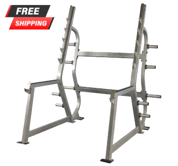 - Easy adjustable Olympic bar hooks and Safety bars
